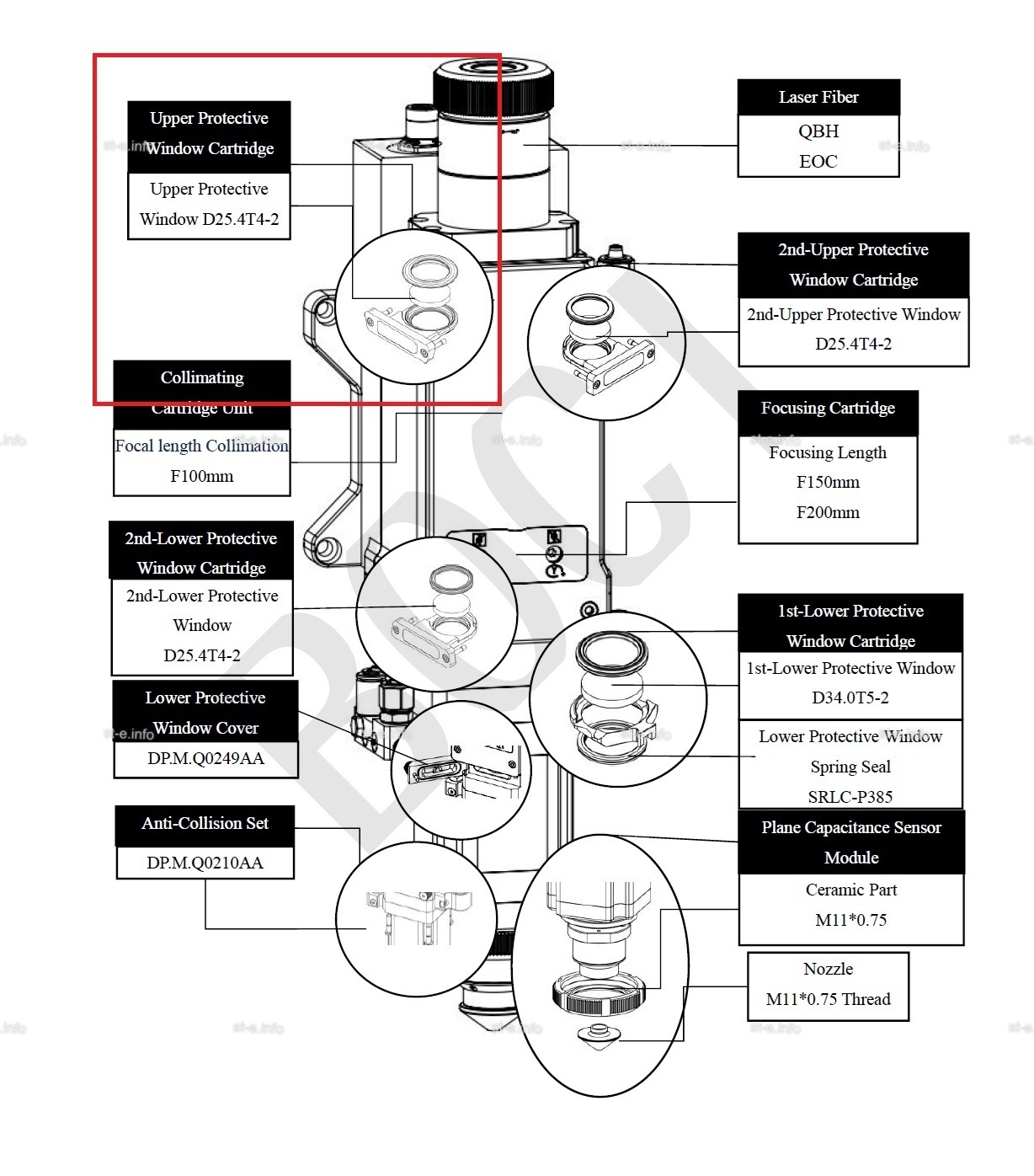 Верхний защитный картридж лазерной головки BOCI BLT 421S